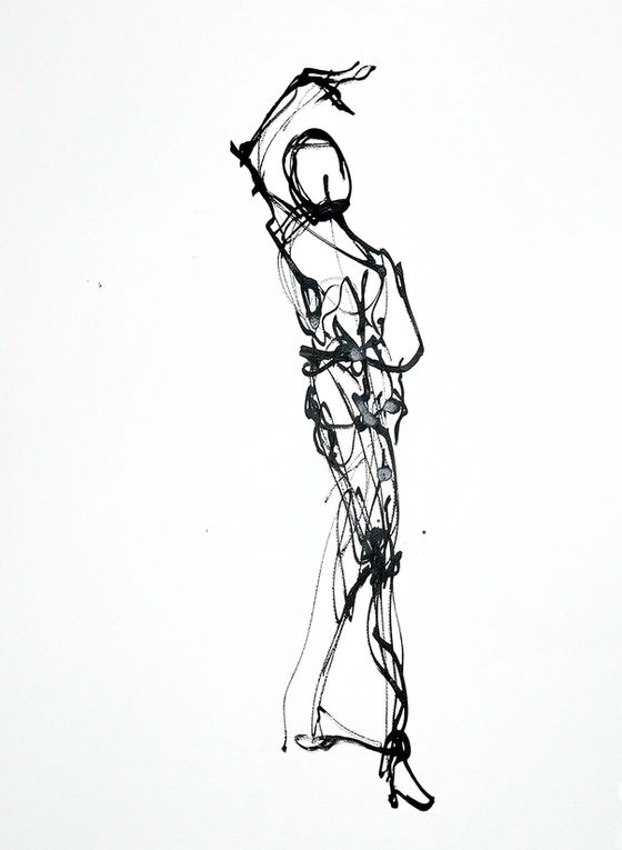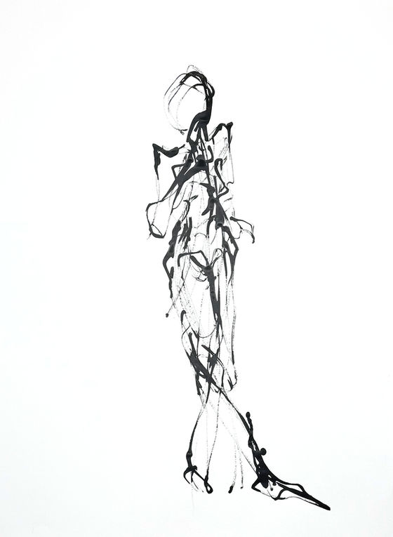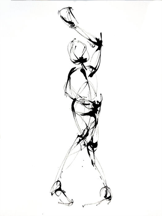 Drawn with sticks and ink on 32 x 28 inch paper.
